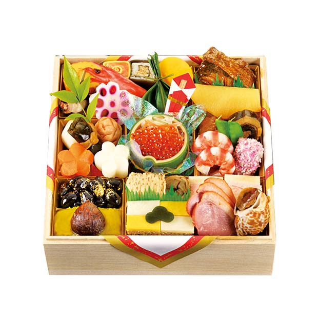 色彩、盛付けにこだわったお重です。華やかさをより華やかに濱登久ならではの一段重です。