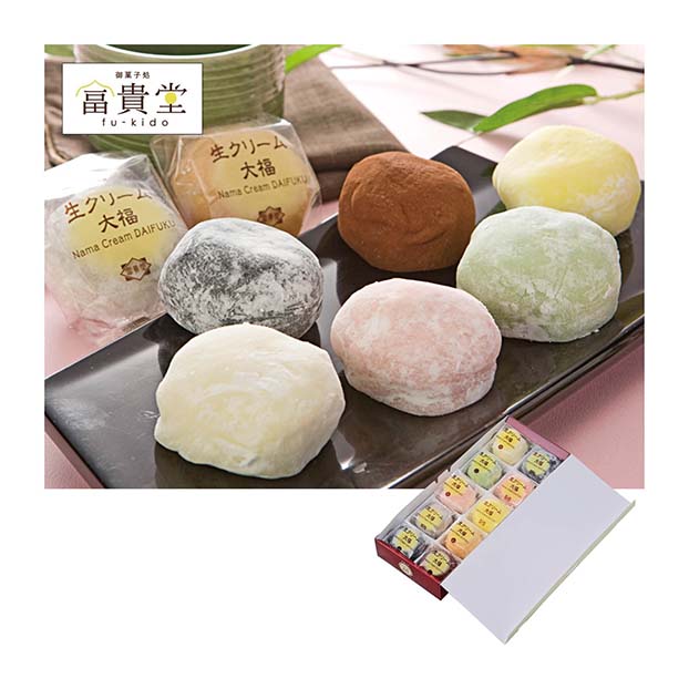 材料にこだわり一つ一つ丁寧に包んだ生クリーム大福です。