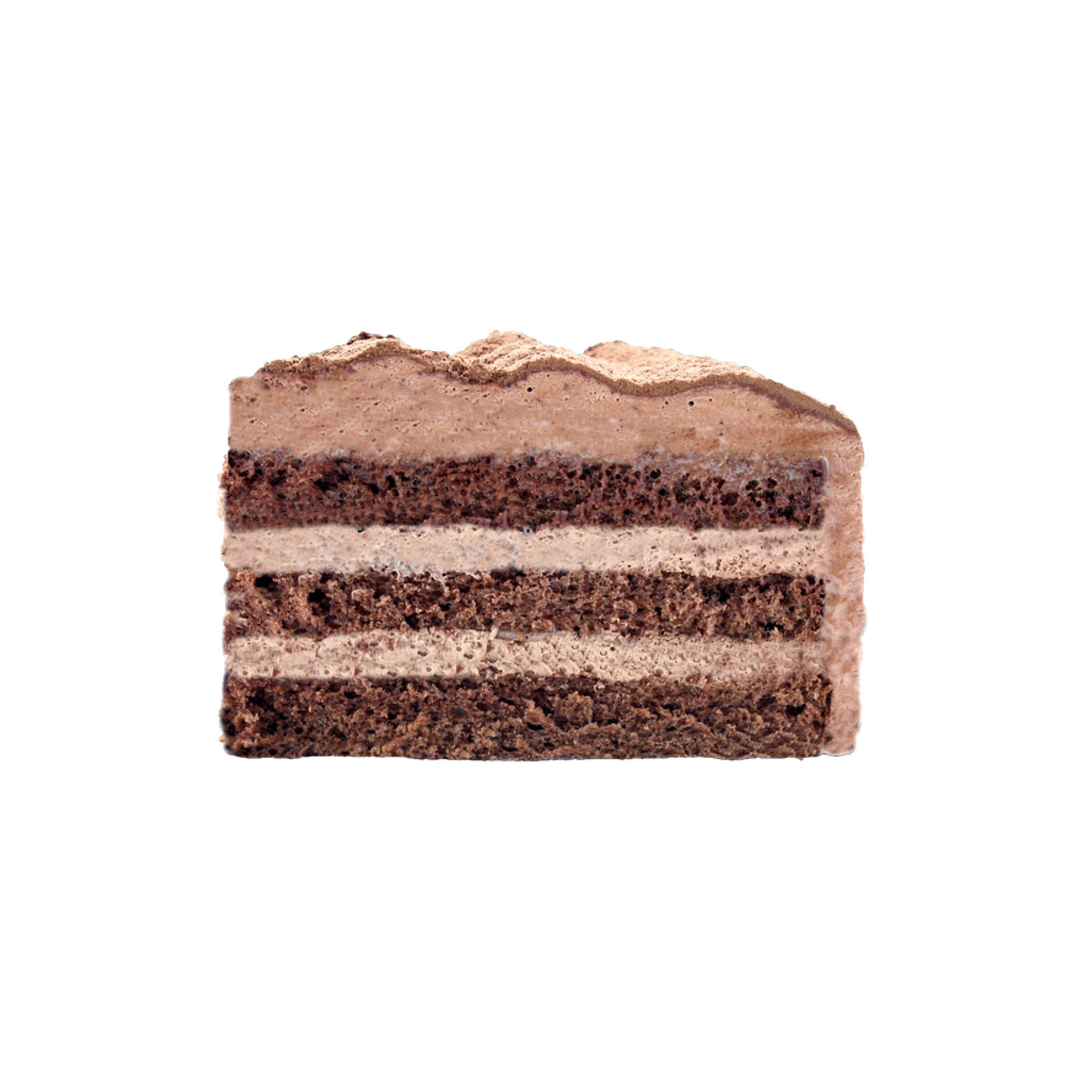 2層のチョコクリームと軽い口あたりのスポンジがバランスよく重なりまろやかな味わいに。