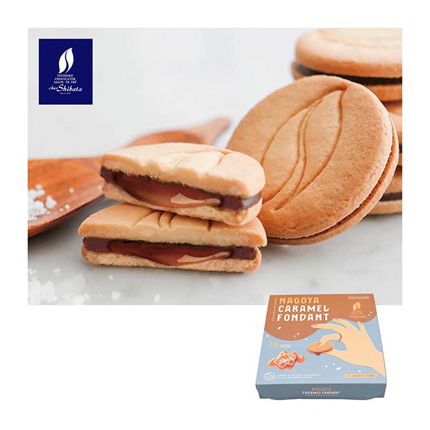 シェ・シバタの代表的なフレーバーである「塩キャラメル」を味わう名古屋スイーツを作りました。フランス産ゲランドの塩を練り込んだサクッと香ばしいサブレで、チョコレートで包んだとろ~りなめらかなキャラメルソースをサンドしました。