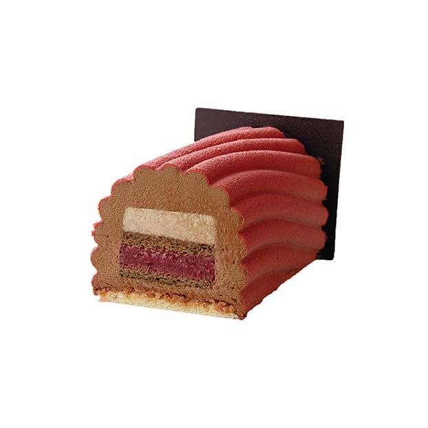 ムースショコラに苺クルスティアンのザクザク食感と、アールグレイクレーム、木苺のジュレを重ね、エレガントな味わいに仕上げました。