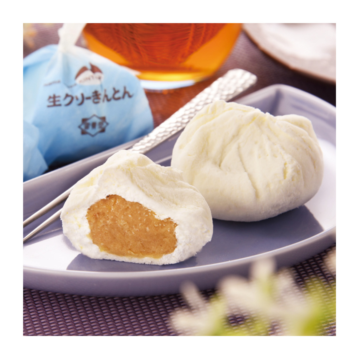 生クリームと栗の融合。生クリームをしっかりと泡立てて栗きんとんを包みました!!
