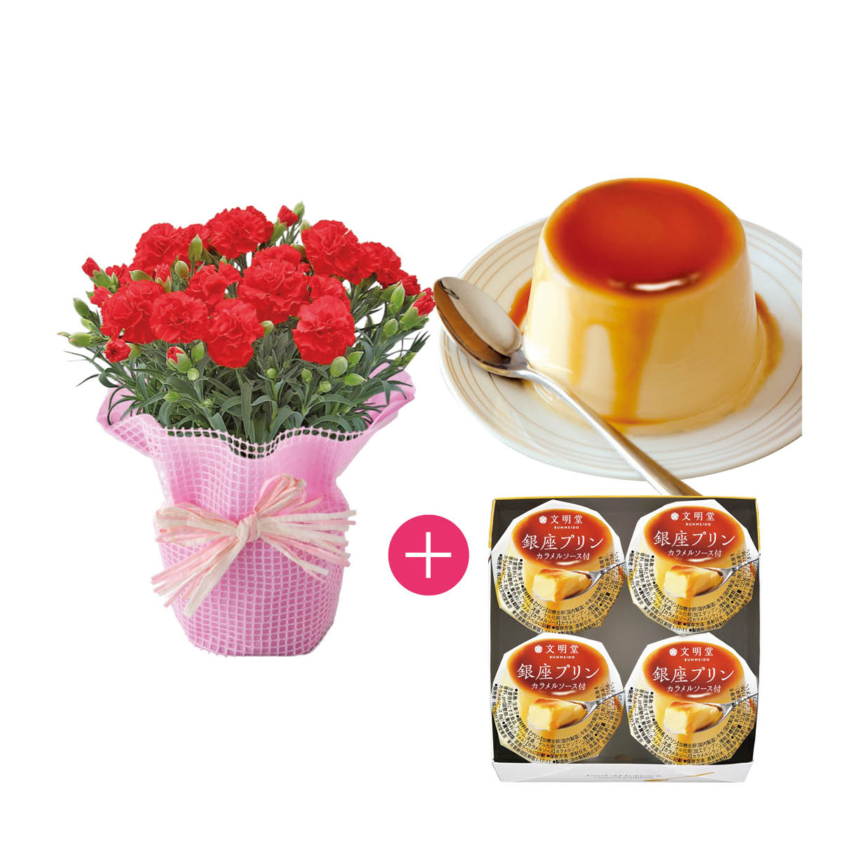 20.カーネーション鉢と「文明堂」銀座プリン4個入セット