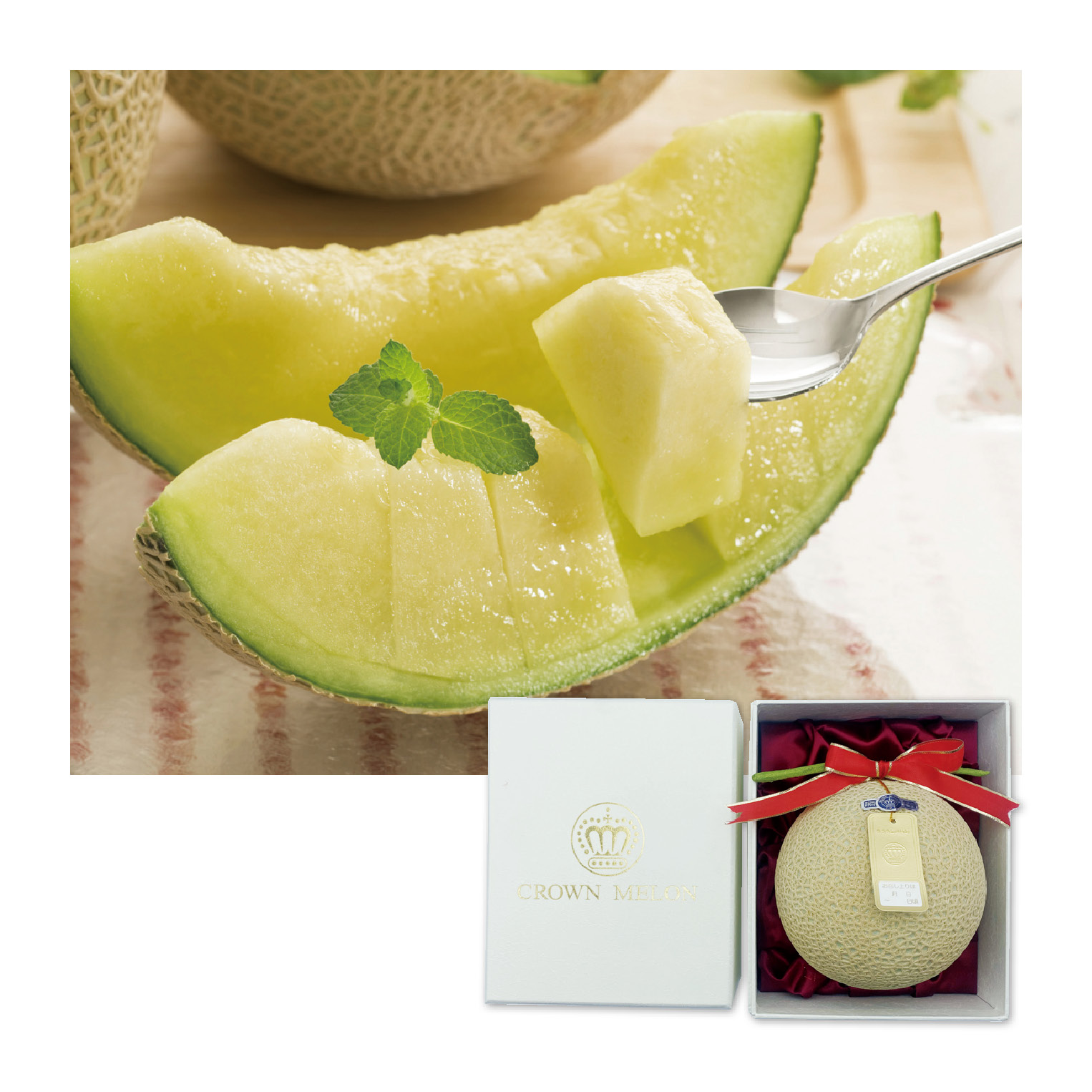 60.【フランテ限定】静岡県産 クラウンマスクメロン 1玉〔化粧箱〕(風呂敷+白箱)